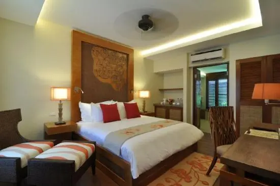 “The 290-room luxury Crimson Resort and Spa has limited beachfront access, but its three-tiered pool offers stunning views of the sea.”
