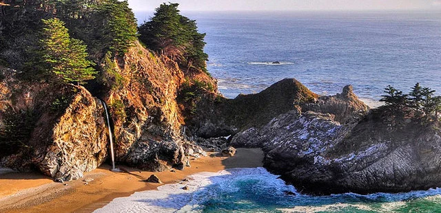 "Similarly named Julia Pfeiffer Burns State Park is another beautiful site with plenty of tall trees and a famous 80-foot waterfall that flows directly into the Pacific Ocean below"