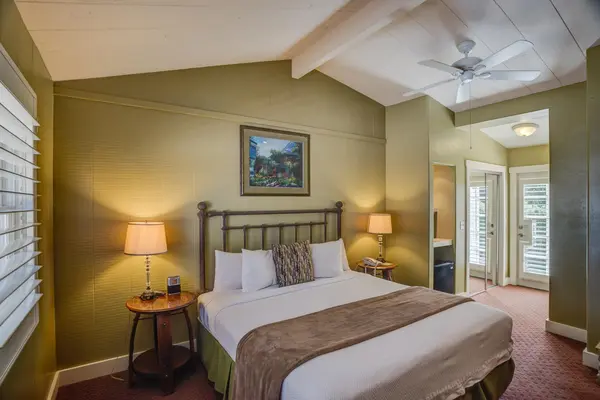 “The two-and-a-half-pearl Carmel River Inn is a delightful, small rustic inn overlooking the Carmel River, a five-minute drive from Carmel Beach.”