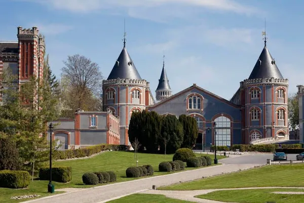 Bits of architecture from a town destroyed in World War I now decorate this hotel garden. — Atlas Obscura