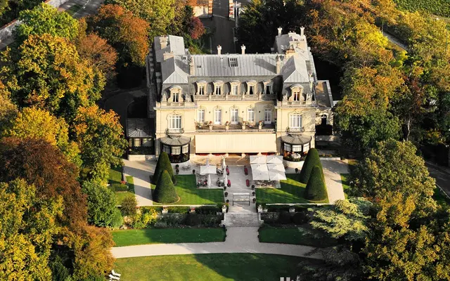 “Grand château surrounded by a pretty 17-acre English-style park on the fringe of Reims, 90 minutes northeast of Paris.”