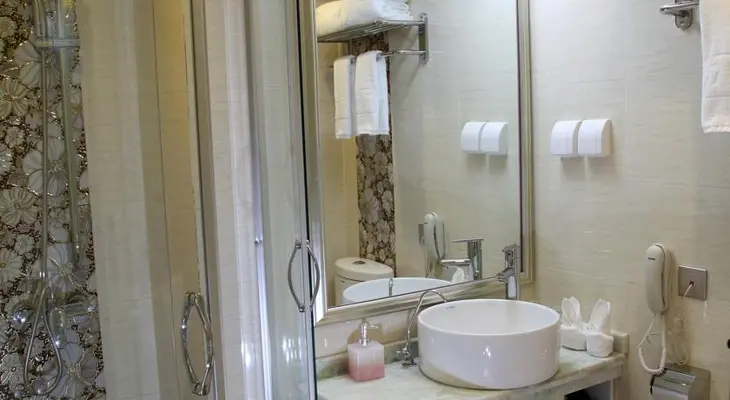 “Don’t be fooled by the tacky glass-and-chrome exterior, as most of the interior has had an overhaul, and attentive staff make for a pleasant stay.”