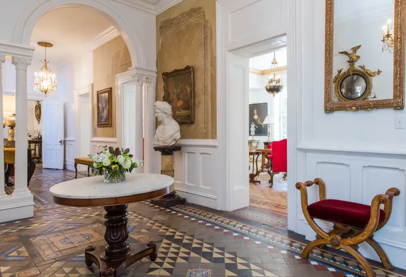 “Facing White Point Gardens, this 19th-century house has views of Fort Sumter and Charleston Harbor from the front steps.”