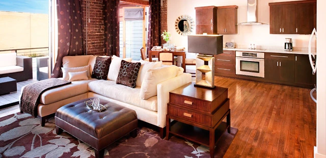 “Spacious rooms, exposed brick walls, ample kitchens, intriguing photography, premium fixtures, and rooftop happy hour views.”