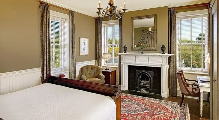 “This Second Empire-style home was built between 1885 and 1887... Accommodations range from Mansion Rooms to the Grand Mansion Suite. The latter looks as if it belongs in a European villa.”
