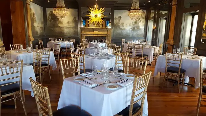 "This chic, gilt-trimmed dining room frequented by society types is the city's finest."