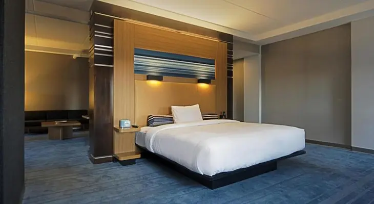 “Guests seeking a hip alternative to typical chain accommodations will find comfort and entertainment in the various offerings. ... This Aloft features 175 loft-style guest rooms.”