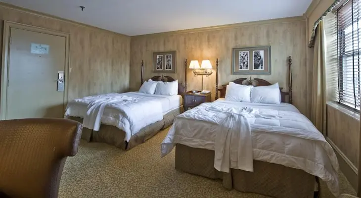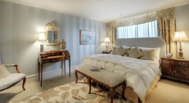 "While the décor leans traditional with antiques and dark wood paneling throughout, the amenities are modern such as the high-speed Wi-Fi, HD flat-screen televisions, and Keurig coffee stations in each room." Full review