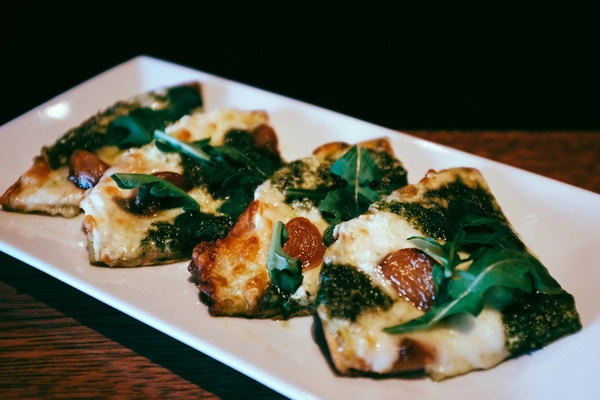 "Trendy spot for American, Mediterranean, Asian fare with attitude, all designed with sharing in mind. Spicy feta, babaganoush, hummus, tzatziki dips with pita chips, savory sashimi tacos."