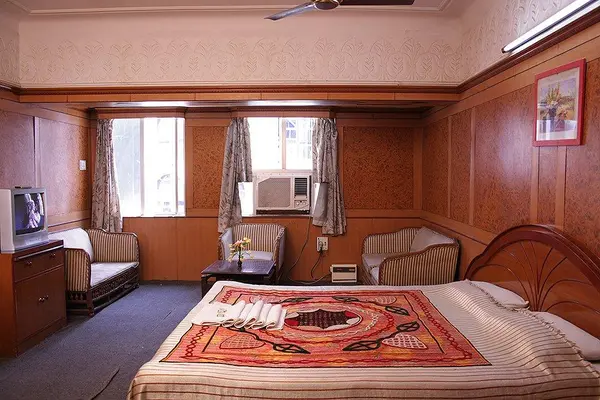 “The non-AC rooms here are reasonable value, a bit dingy and worn but kept clean enough, in shades of brown.”