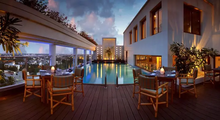 “At this ‘ecosensitive’ hotel, floors are made of bamboo or rubber, water and electricity conservation hold pride of place, and the heat generated by the AC warms the bathroom water.”