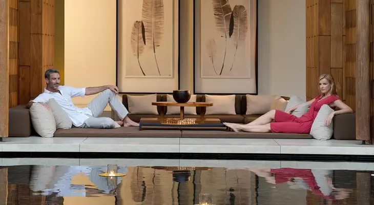 “Tropical-modern style creates a calming mood at this riverfront resort.”