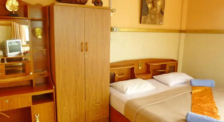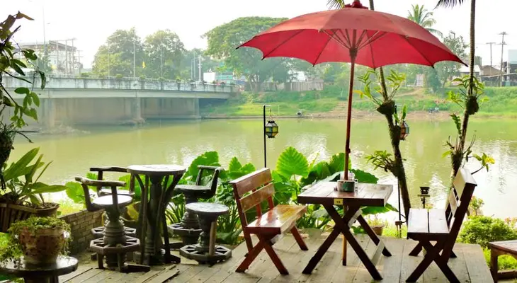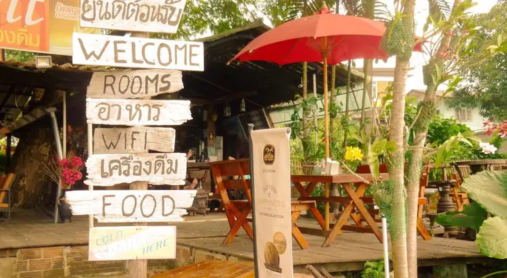 “North of the centre by the busy Rama IX Bridge, in a modern building by the river, this Dutch–Thai guesthouse has large, comfortable and attractive fan or a/c rooms.”