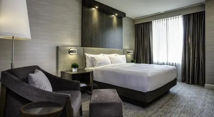 "Everything a hotel should be, with its spacious lobby, friendly staff, inviting bar and restaurant, generous fitness centre, pool and large, tech-centric earth-tone rooms." Full review