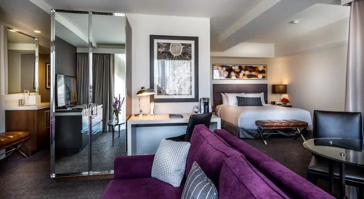 "The Godfrey's Cubist-inspired exterior looks amazing. Inside, the large, mod-industrial rooms are more comfy than you'd think, with a snug bed, wet bar and ergonomic workstation. " Full review