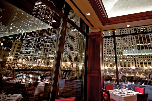 “Come nightfall, well-heeled noshers join the nine-to-fivers, elevating the glitz factor to typical Chicago steakhouse caliber.”
