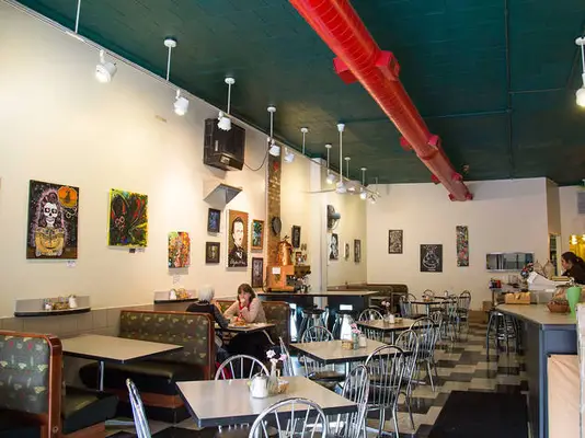 "A blend of cozy bohemian hangout and hoppin’ breakfast haunt, this spot’s sun-splashed walls inspire all-day coffee sipping while leafing through the menu." Full review
