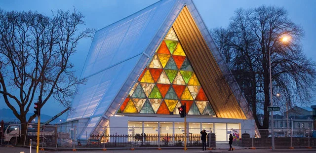 "Locals call it the Cardboard Cathedral because it is built largely from 98 cardboard tubes, covered in plastic." Full review