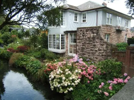 “When we visited, post-earthquake repairs were continuing on this architecturally interesting home, but guests were still able to stay in the blissful 'river room', gazing over the gurgling Avon.”