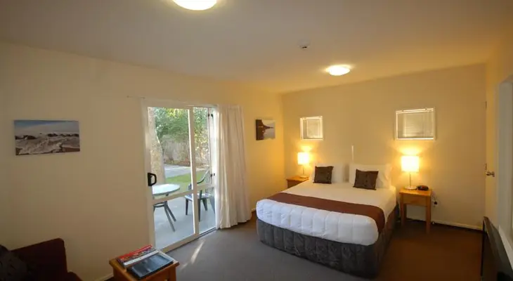 “Pretty flowerbeds soften the concrete here, and inside you'll find more high-standard motel accommodation in spacious, spotless units, all with kitchenette.”