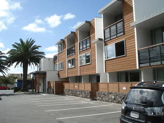 “Stylish motel a block from the beach, with a range of studios and apartments all with a balcony or courtyard, Sky TV and DVD player. 5.”