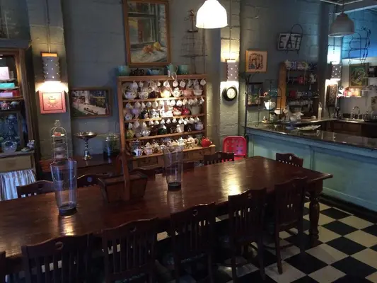 “The “charming”, “cozy” spot (decked out with an “eclectic” collection of tea pots befitting its “wonderful” high tea) also offers an array of light fare, making it an overall “treat.””