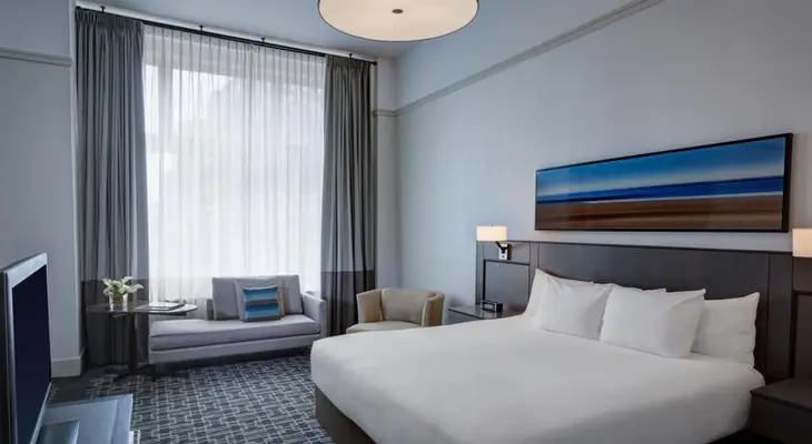 "Set behind the imposing facade of The Arcade, a historic landmark, this hotel provides all the usual upscale comforts and services."