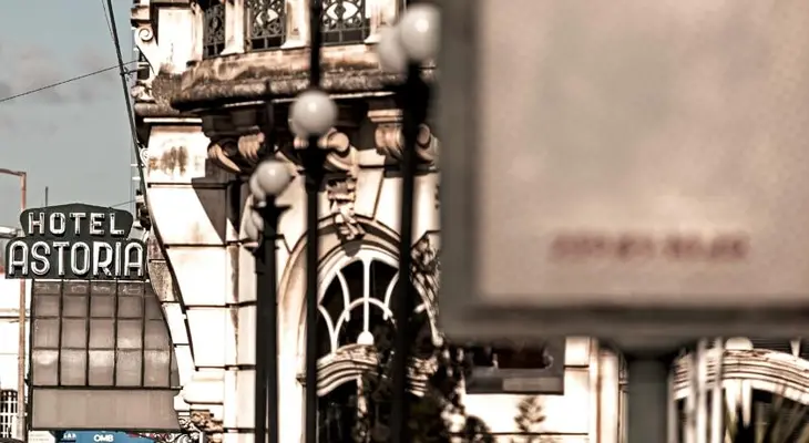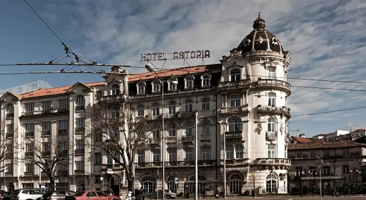“A city landmark since 1926, the Astória’s art nouveau facade contemplates the river and Largo da Portagem.”
