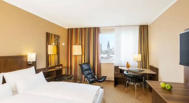 "This modern hotel is close to the Severin bridge and not far from the Stollwerck chocolate museum. Some of the modern, functional rooms are superior in that they face the peaceful interior courtyard."