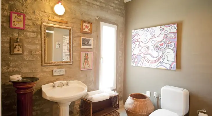 "Three guest rooms, an interior patio-deck with pretty old-town perspectives, and a cozy library-lounge are all decorated with found objects from Eduardo's world travels." Full review