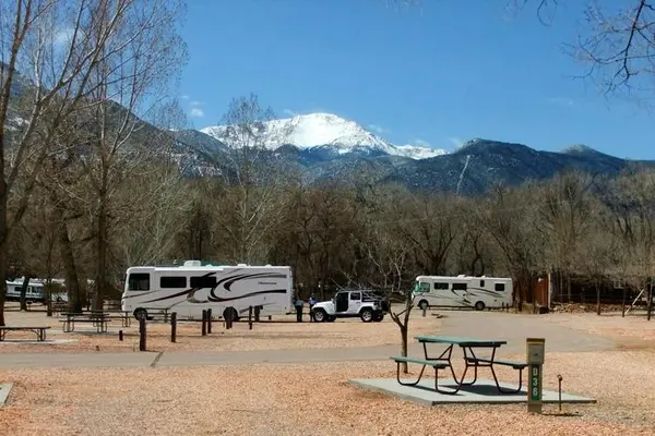 "Located near Garden of the Gods, this large, tree-shaded campground offers 250 full RV hookups (30- and 50-amp service, some with modems and phones) and additional tent sites." Full review