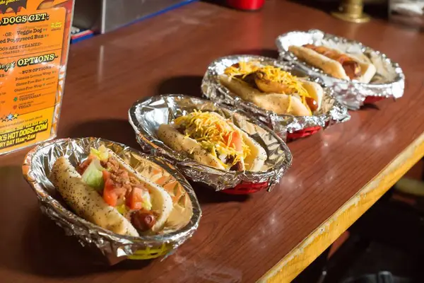 All dogs are served on a steamed poppy seed bun; dog options run the gamut from a bacon-wrapped, all-beef dog to a veggie version. Vegan and gluten-free choices also abound. — Gayot