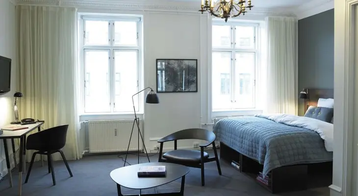 “Arty hotel situated on a Nansensgade street corner with bright and airy rooms spread over five floors in two interconnected nineteenth-century apartment buildings.”