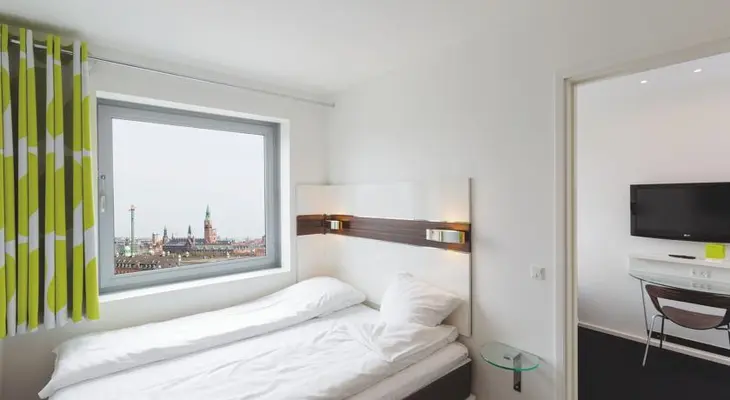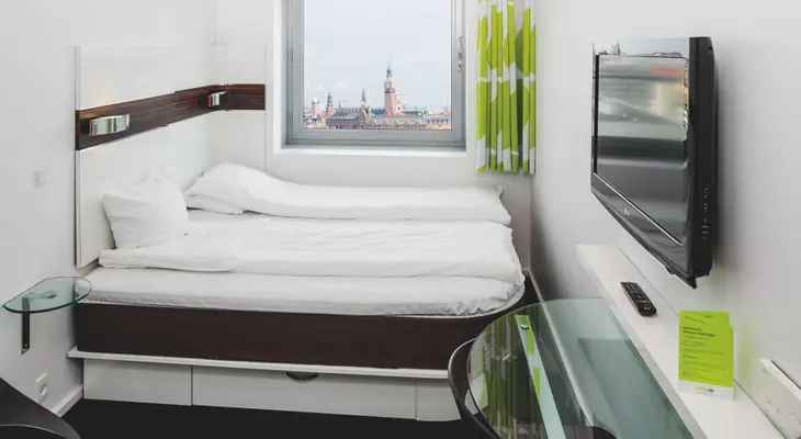 "Crisp and well-designed (platform bed, space-saving wall-bolted tables) and you'll find that, in a town as expensive as Copenhagen, it's everything you need to be happy." Full review