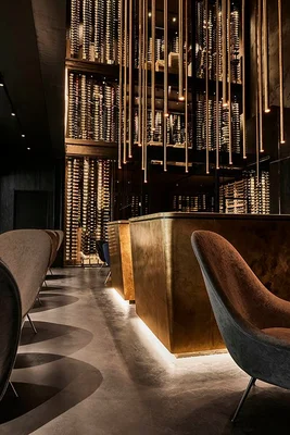 “They're enormous. Luckily, they open electronically, and once you've entered, you're met by two hosts...from there, you're led through a series of spaces, from a bar to a dining room to a lounge.”