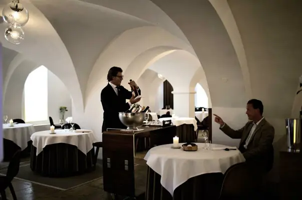 “This posh two-Michelin-starred restaurant, which is tucked into a basement, is where you can sample of Copenhagen's finest haute cuisine.”