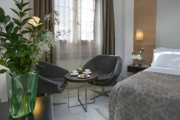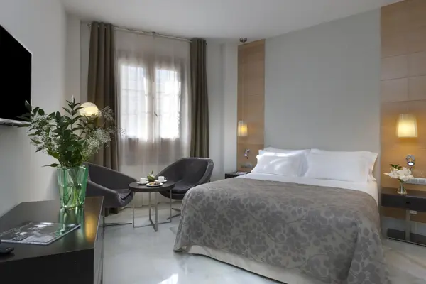 “A modern business hotel with a cobblestone Mudejar courtyard, carved-wood ceilings, and a plush lounge...the large guest rooms offer plenty of luxurious extras along with higher rates to match.”
