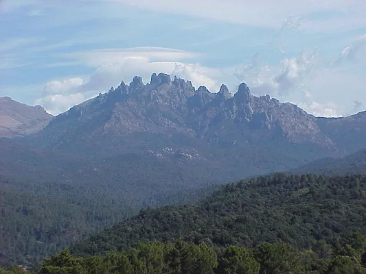 “The Col de Bavella (Bavella Pass; 1218m) is overlooked by the imposing silhouette of one of southern Corsica's most striking and beautiful landscape features: the sharp points of the Aiguilles de Bavella (Bavella Needles).”