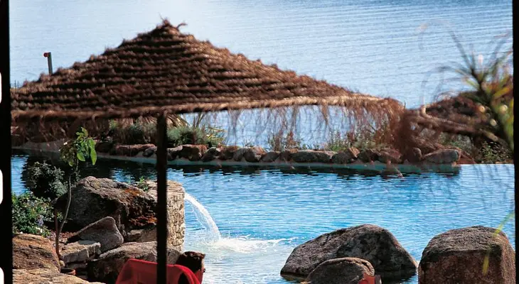 "The upscale Hotel U Capu Biancu enjoys a spectacular but isolated hillside setting that gently slopes down to its two private beaches on the Gulf of Santa Manza." Full review