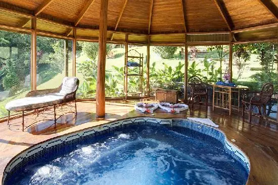 "26-room carbon-neutral boutique hotel in the mountains of the Costa Rican cloud forest...it has a microbrewery, lush flower and vegetable gardens, and rooms with sweeping views of the Gulf of Nicoya."