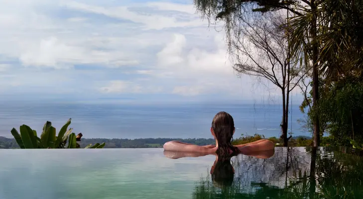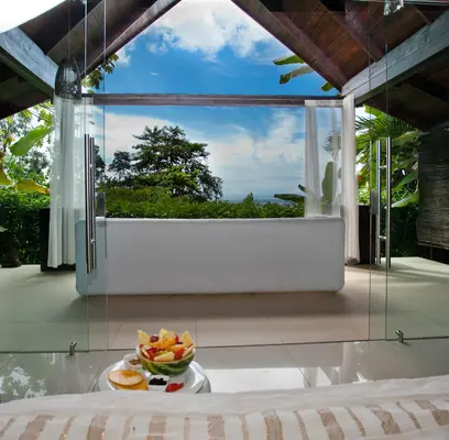 "This romantic, mountainside retreat offers Balinese statues at every turn and Netherlandish, all-glass villas with panoramic ocean and jungle views." Full review