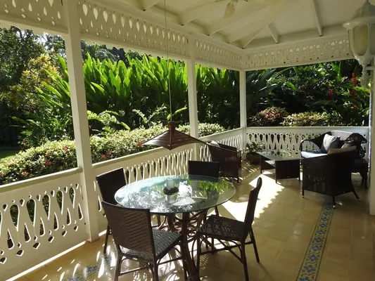 "Owned by a delightful couple, this meticulously maintained place offers four charming rooms in a Caribbean-style plantation house, complemented by three kitchen-equipped storybook cottages." Full review
