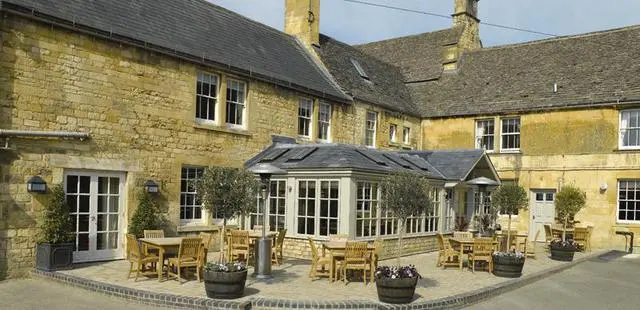 Delightful 17C Cotswold stone inn on a peaceful village green. Sit in the beamed bar with its inglenook fireplace...dishes are hearty and mainly British-based. — Michelin Guide
