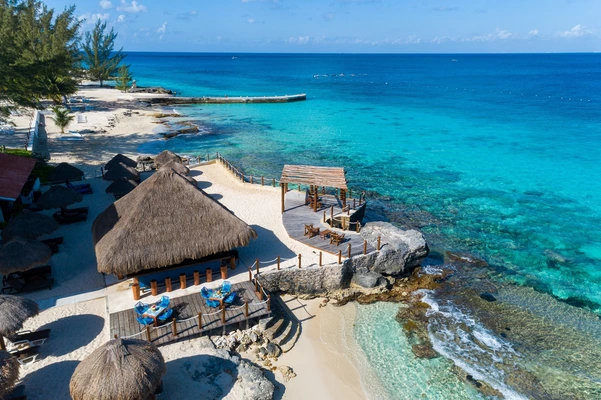 Situated on Dzul-Ha reef, the island's most upscale beach club has a small sandy beach, sunset views, and great food. — Fodor's