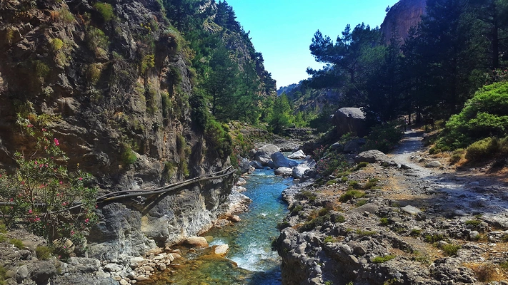 South of Chania a deep, verdant crevice extends 10 km (6 miles) from near the village of Xyloskalo to the Libyan sea. — Fodor's