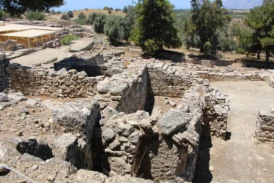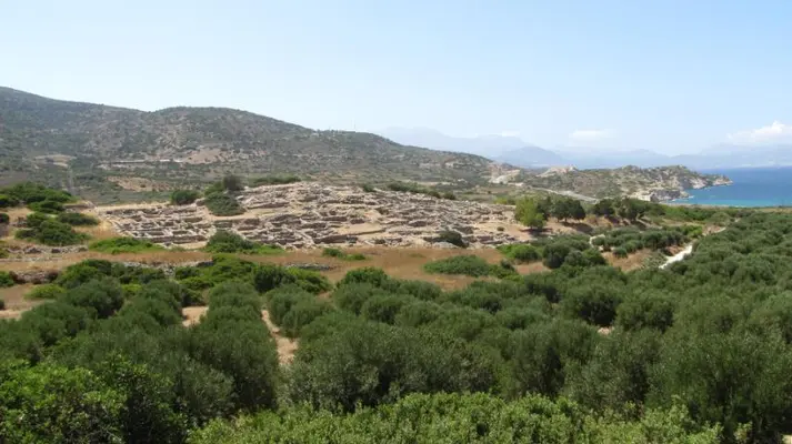 Scattered up the hillside, sheltered by two rocky spurs, the impressive ruins of Lato, an important Dorian city, occupy a superb site. — Michelin Guide