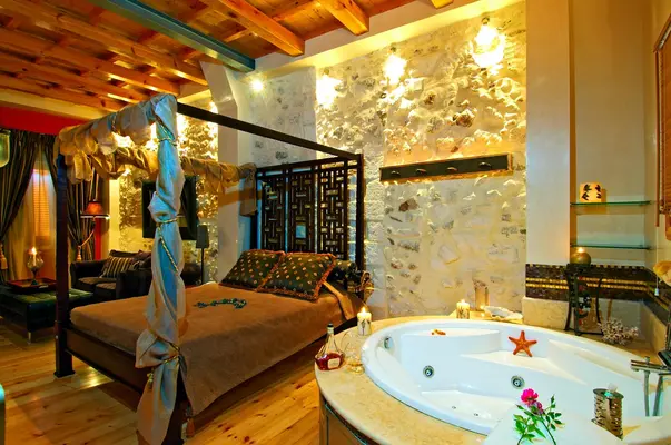 "Luxury is taken very seriously at this hushed retreat, where you’ll be ensconced in warmly furnished studios sporting stone walls, beamed ceilings and Jacuzzi tubs." Full review