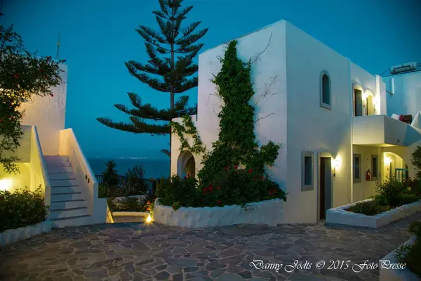 “The Hersonissos Village Hotel is a whitewashed, village-style property sprawling across a steep hillside, a 10-minute walk from a long sandy beach and 20-minute walk from the resort of Hersonissos.”