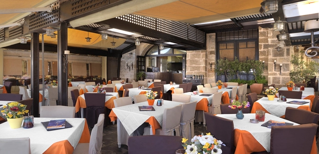 “An enchanting garden and the high-ceilinged parlors of an elegant neoclassic mansion are the setting for what many locals consider to be the best seafood tavern in Ayios Nikolaos.”