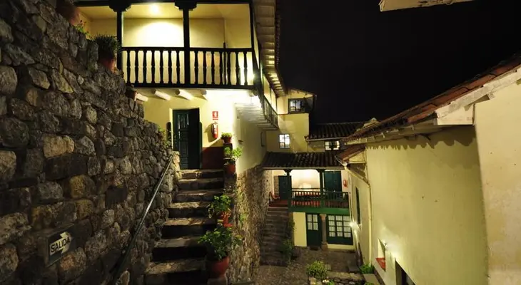"A renovated 18th-century house, constructed over Inca crop terraces, it has quirky old furniture and paintings, woven bedspreads, and loads of verandahs."